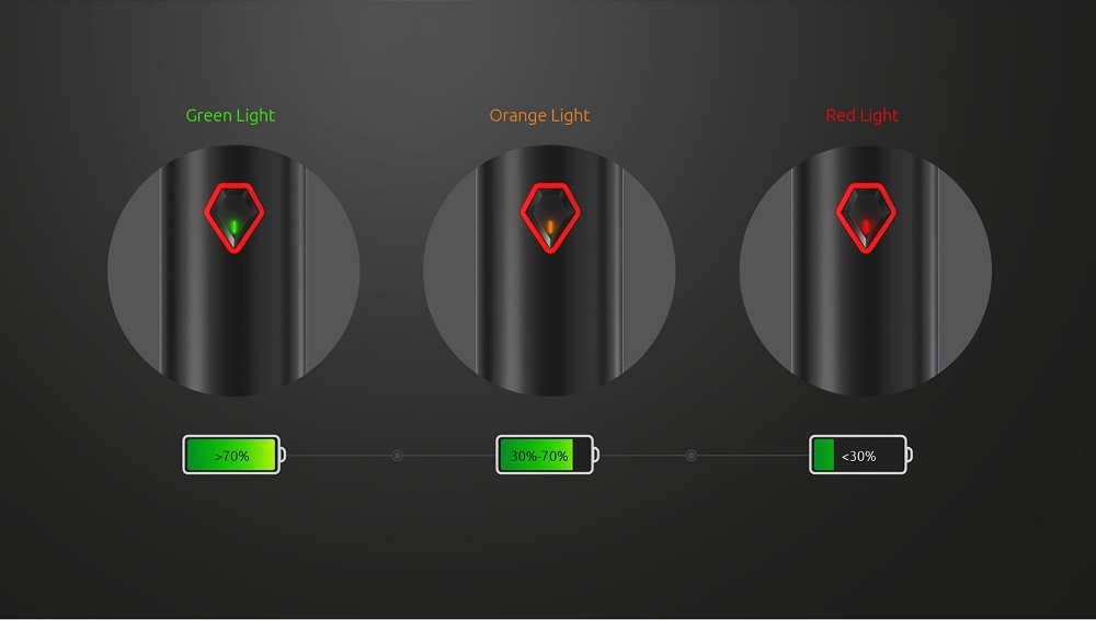 For instance, Green Light: above 70% battery power remaining, Orange Light: 30%-70% battery power remaining, and Red Light: below 30% battery power remaining.